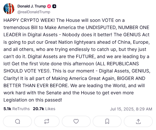 With an enthusiastic social media post, President Trump has thrown his weight behind the “GENIUS Act,” a major new bill aimed at making America the “UNDISPUTED, NUMBER ONE LEADER in Digital Assets.” This push to finally create a comprehensive regulatory framework for cryptocurrency is being hailed as a necessary step to keep America ahead of global competitors like China.